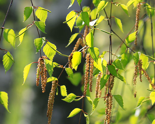 • Les pollens d’arbres Dès les premiers beaux jours, plusieurs espèces d’arbres libèrent d’importantes quantités de pollen. Les plus allergisants sont le bouleau, le platane, le frêne, l’aulne, le noisetier et le chêne. Leur période de pollinisation s’étend généralement de mars à mai, selon les régions et les conditions météorologiques.
