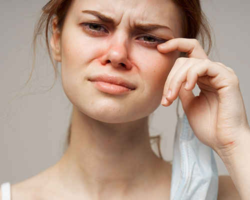 • Yeux rouges, larmoyants et irrités Appelée conjonctivite allergique, cette inflammation des yeux est très fréquente au printemps : ils deviennent rouges, gonflés, sensibles à la lumière et peuvent pleurer sans arrêt.