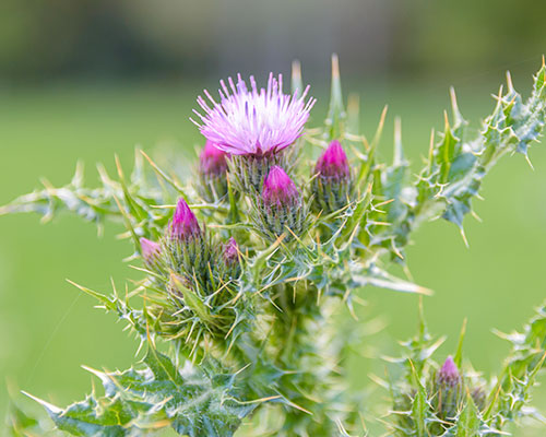 Le Chardon-Marie, est une plante herbacée de la famille des Astéracées, reconnaissable à ses grandes feuilles épineuses marbrées de blanc et à ses fleurs pourpres en forme de pompon. Originaire du bassin méditerranéen, on le retrouve aujourd’hui à l’état sauvage dans de nombreuses régions d’Europe, d’Asie et d’Afrique du Nord, notamment sur les terrains secs et ensoleillés.