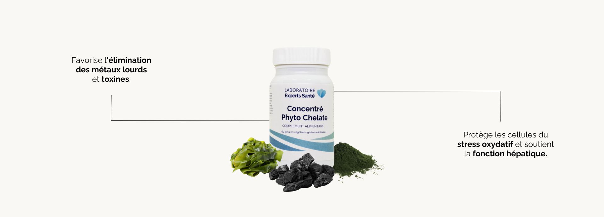 Le Concentré Phyto-Chélate est une synergie unique de trois actifs naturels puissants : Shilajit, Laminaria et Chlorella. Chacun d’entre eux est reconnu pour ses propriétés spécifiques en matière de détoxification et de protection cellulaire.
