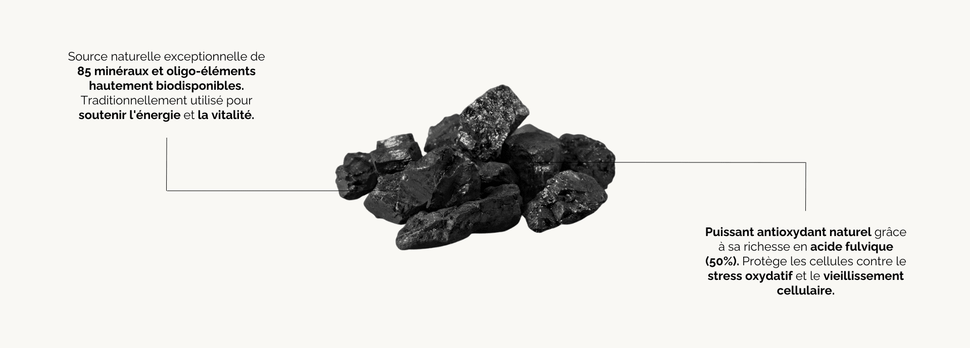 - Riche en antioxydants naturels, notamment en acide fulvique, qui contribuent à protéger les cellules du stress oxydatif.