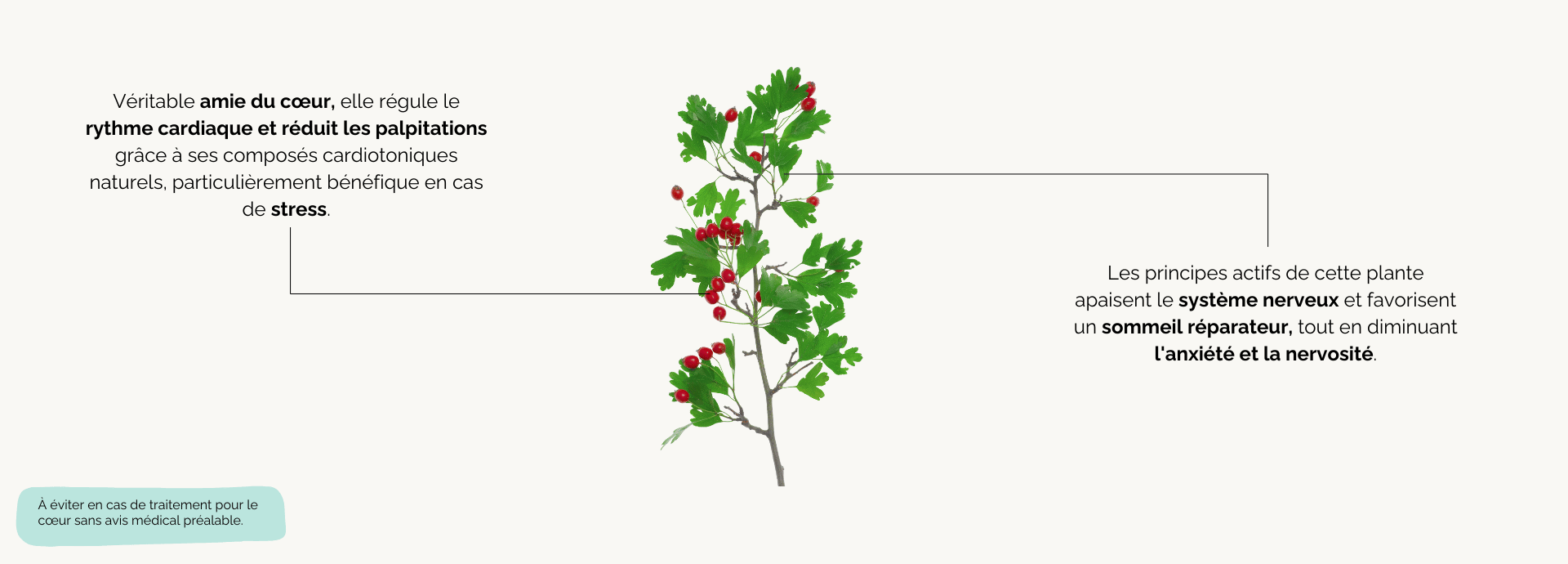 La teinture mère d’Aubépine Sommité est riche en principes actifs, notamment :