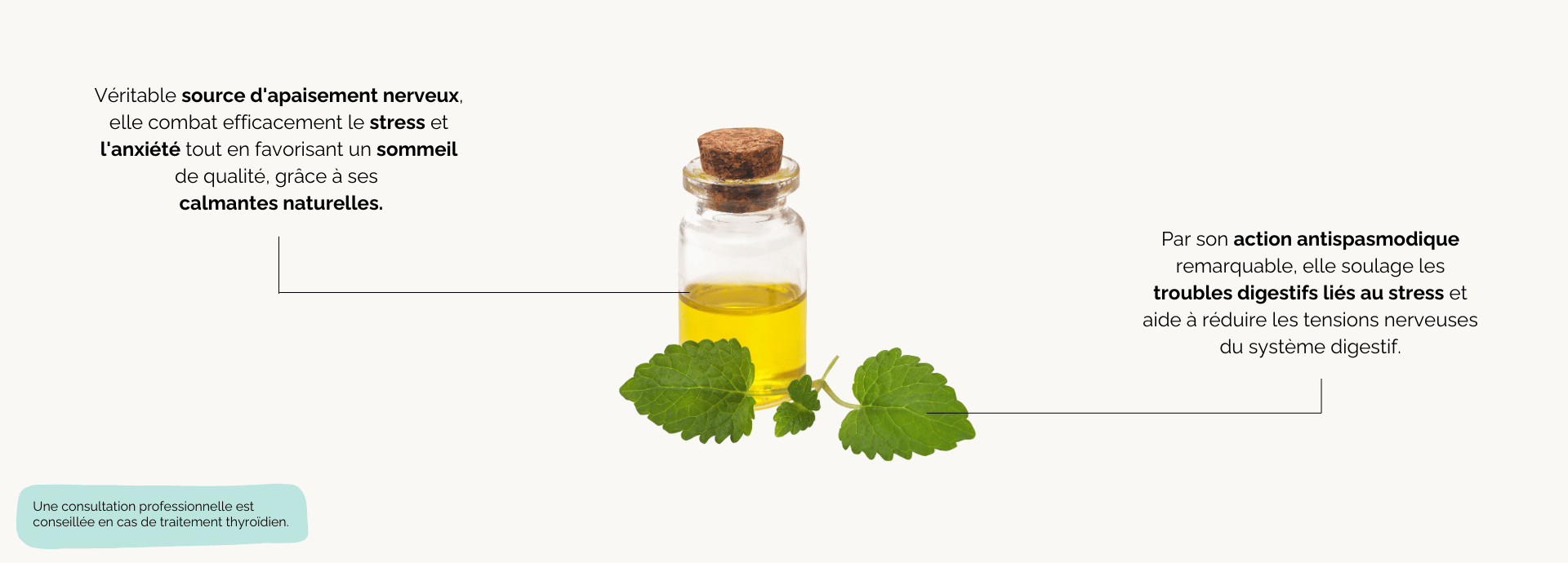 La teinture mère de Mélisse est riche en principes actifs, notamment :