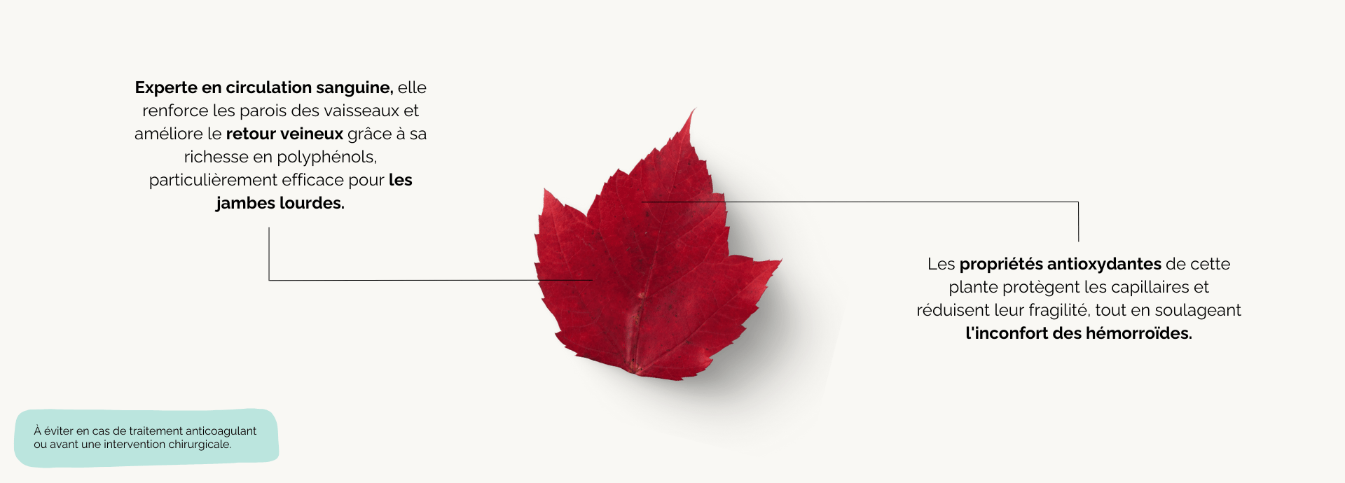 - Riche en polyphénols, particulièrement efficace pour les jambes lourdes
